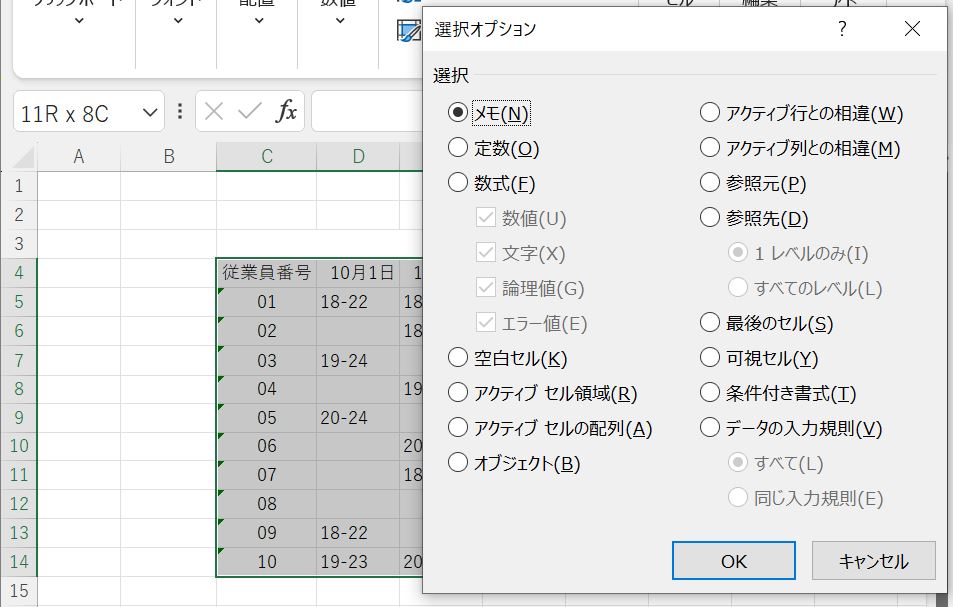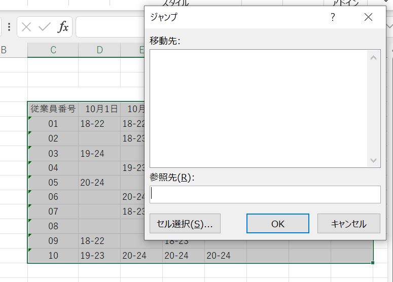 ステップ4:空白セルを押下して、OKボタンを押します。