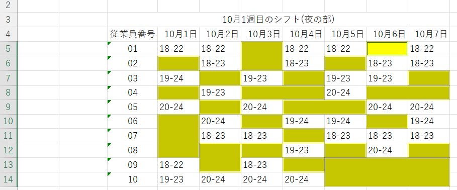 空白セルを一か所ずつ選択して黄色くするのはおっくうですよね。