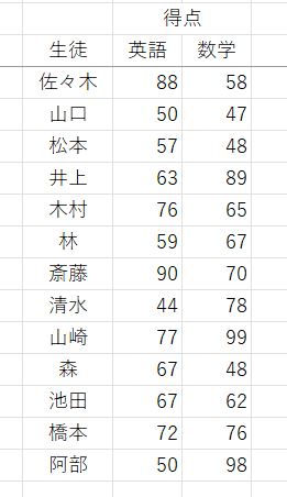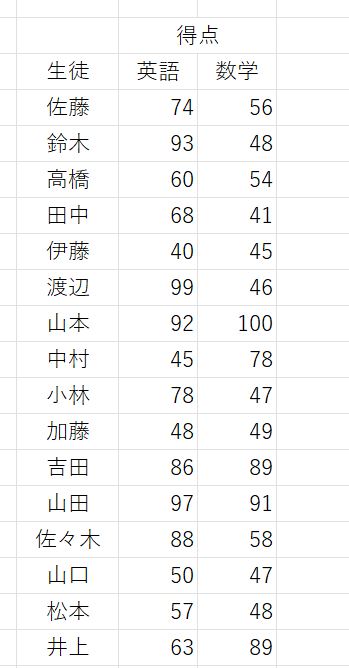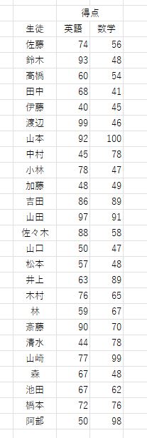 このように数字が数学の得点なのか英語の得点なのかわからないので、数学と英語のショートカットキーで行を固定することによりスクロールしても得点をわかりやすくします。