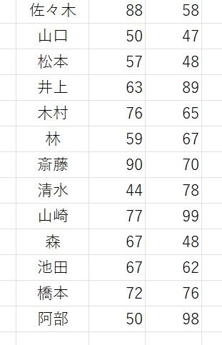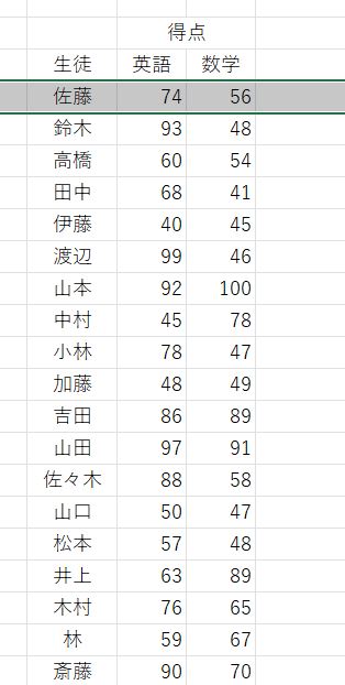 今回は英語と数学の下の行、つまり佐藤さんの行を選択します。